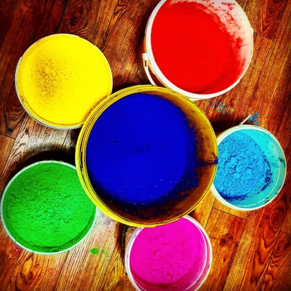 Colours: Non-toxic, non-chemical, non-allergenic arrow-root flour. Please note despite the colours being non-toxic, the Samaj is not responsible for any adverse reactions.