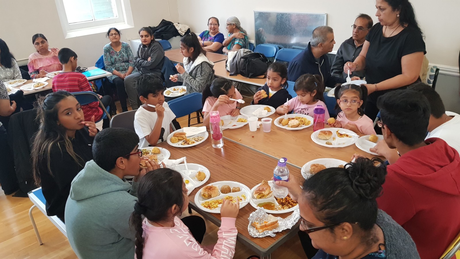 12.00pm – We met our picnic ‘bandhus’ at Victoria Centre (Community Centre) – round the corner from both the Mandirs – Padhyatra complete and fit steps clocked. Chai, thepla, biscuits, pinwheel wraps and snacks were served. Vigna Modha looked after the “Baccha party” who were so very well behaved and happy.